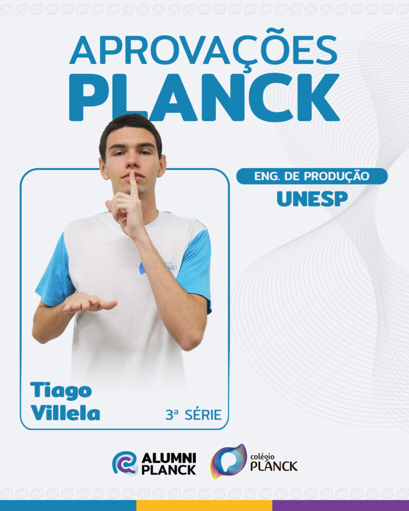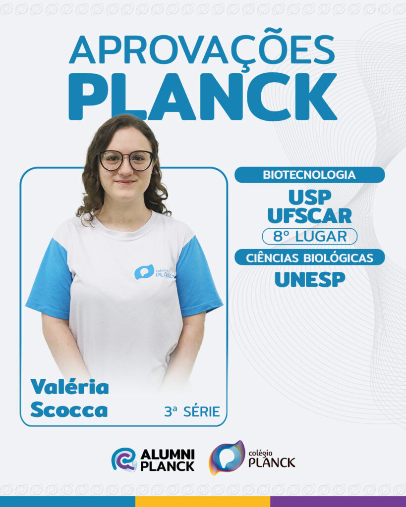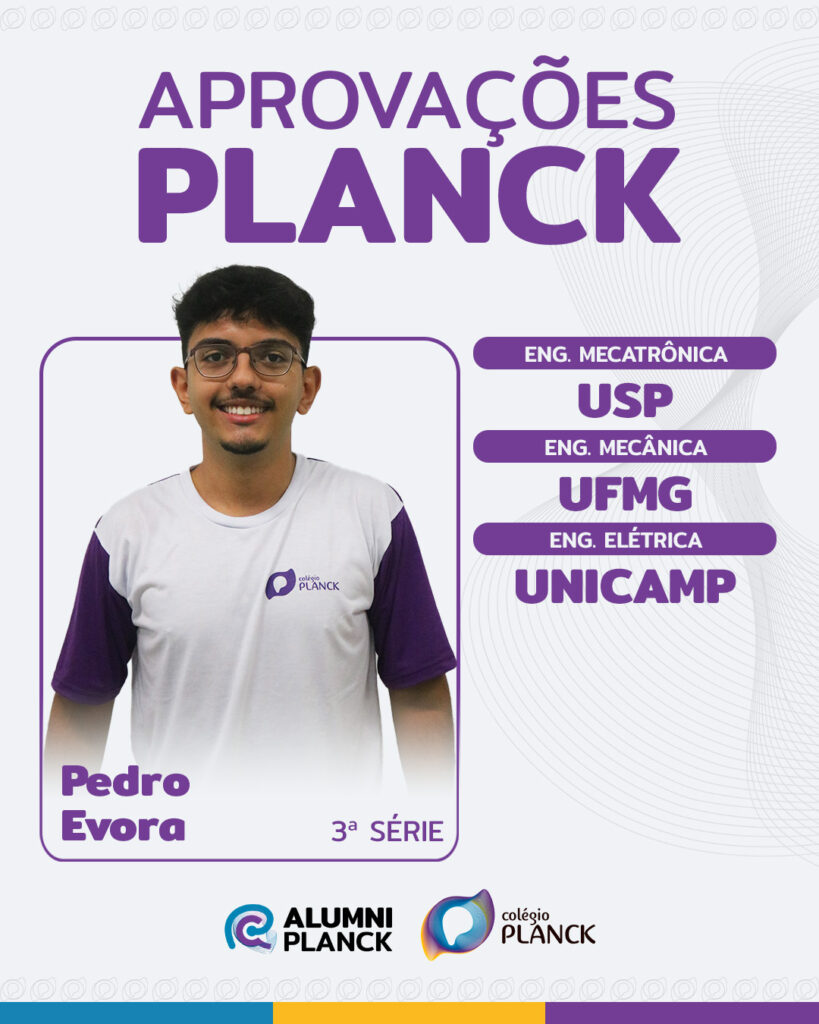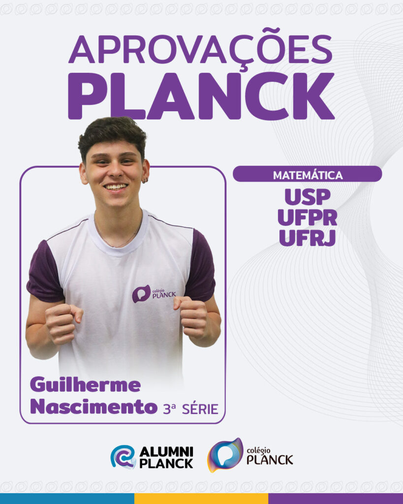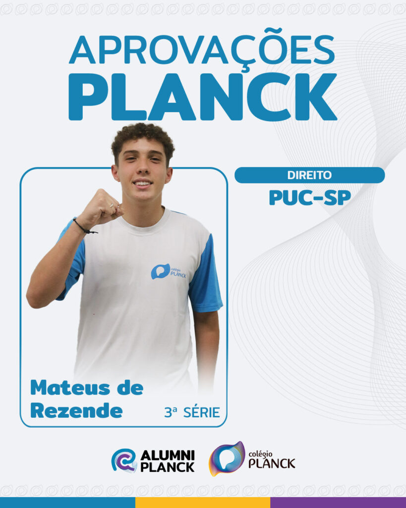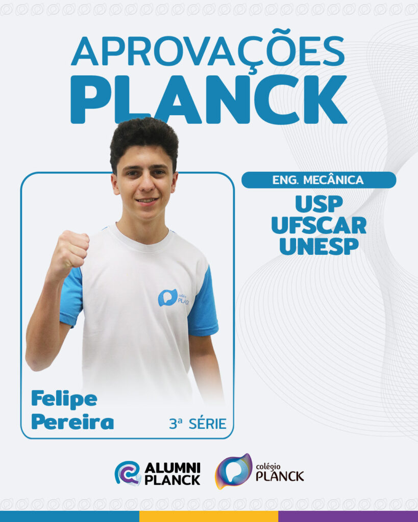 O Colégio Planck se destaca ano após ano pelos excelentes resultados em vestibulares e universidades renomadas. Nossos alunos conquistam aprovações em instituições públicas e privadas de alto nível, reflexo de um projeto pedagógico sólido, professores altamente qualificados e uma cultura de alto desempenho acadêmico. Cada aprovação representa o compromisso do Planck com a formação integral e o futuro dos seus estudantes.