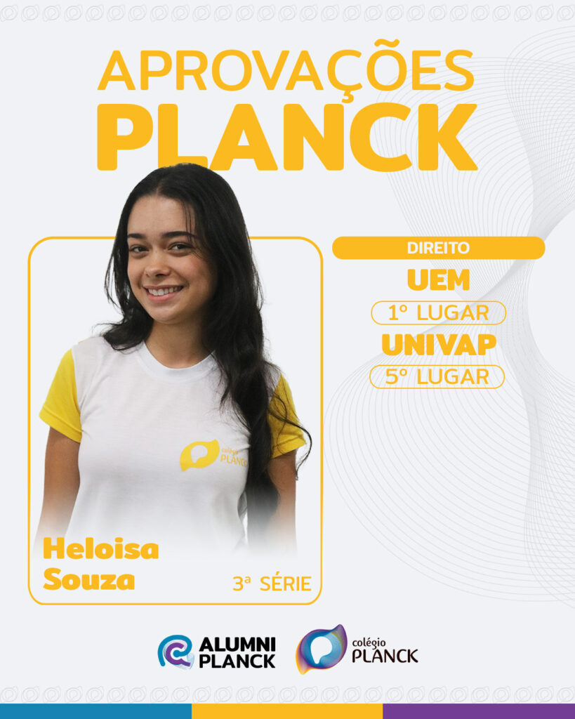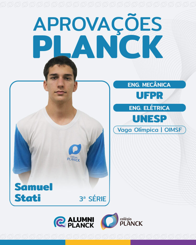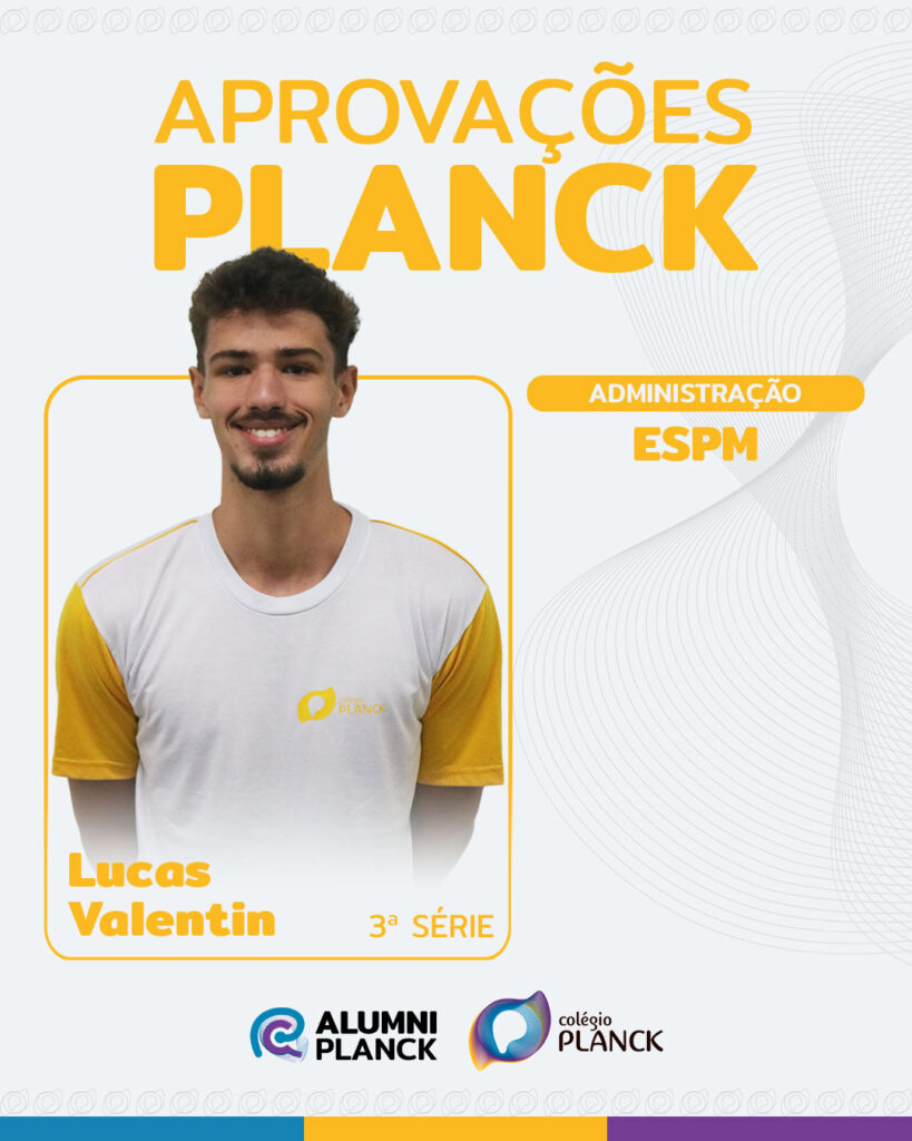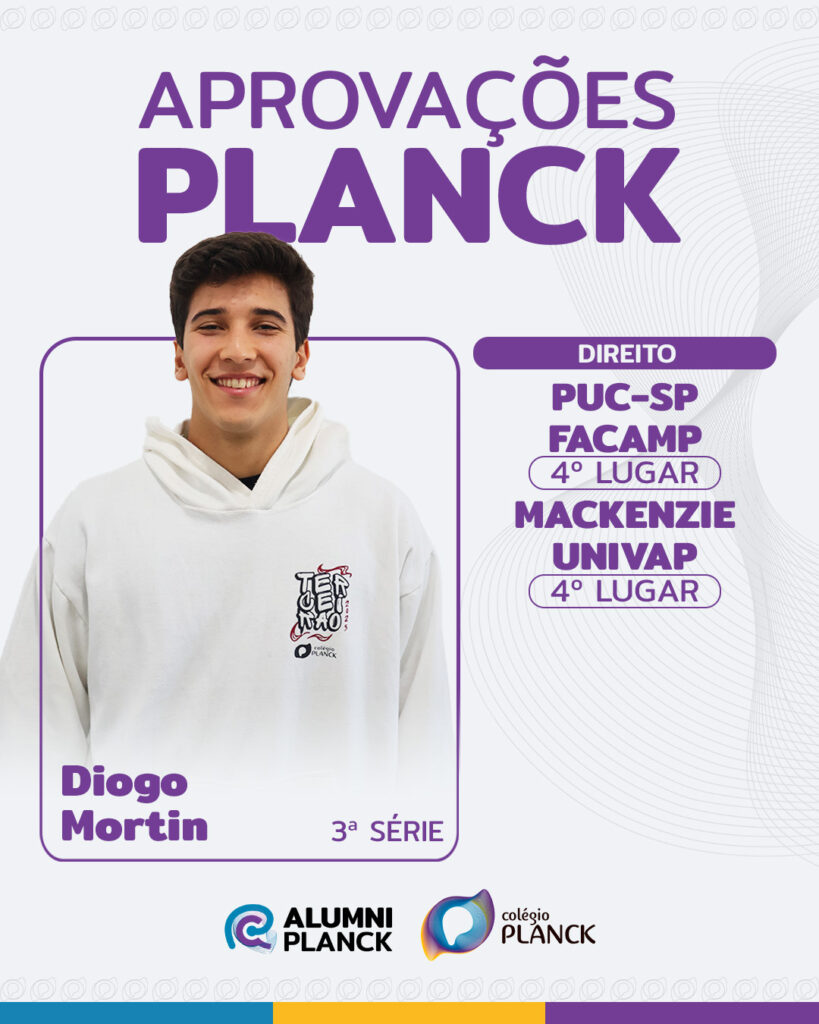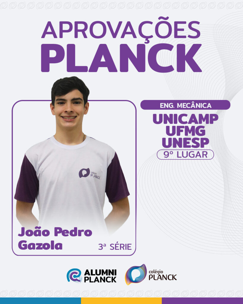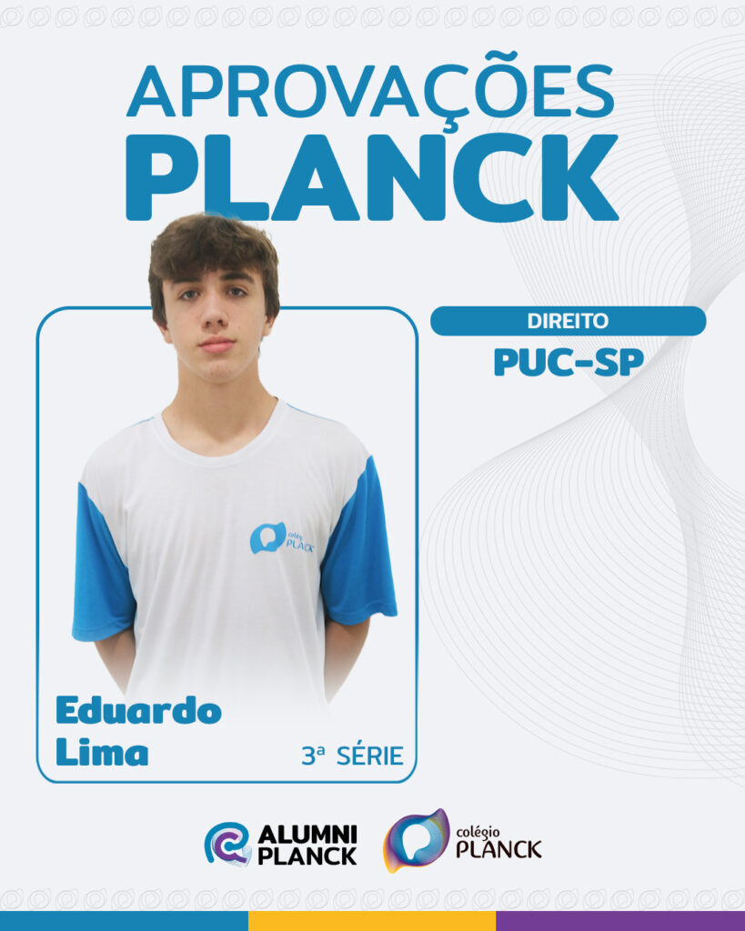 O Colégio Planck se destaca ano após ano pelos excelentes resultados em vestibulares e universidades renomadas. Nossos alunos conquistam aprovações em instituições públicas e privadas de alto nível, reflexo de um projeto pedagógico sólido, professores altamente qualificados e uma cultura de alto desempenho acadêmico. Cada aprovação representa o compromisso do Planck com a formação integral e o futuro dos seus estudantes.