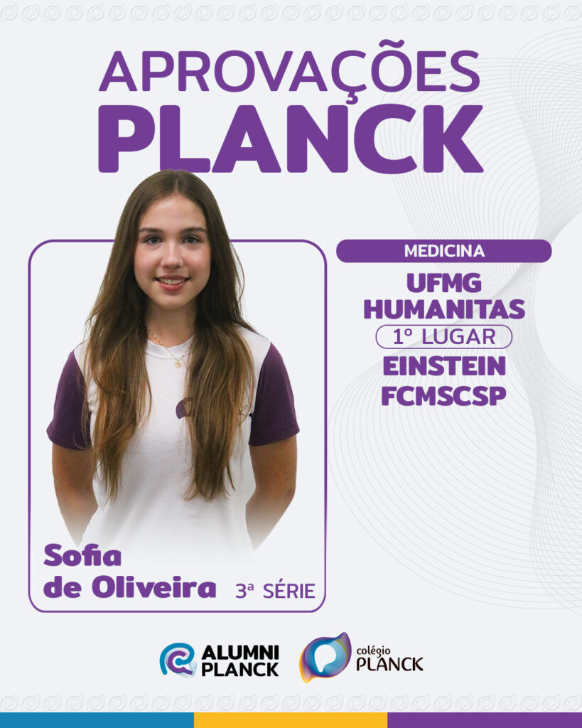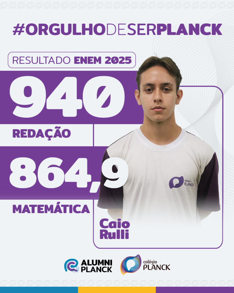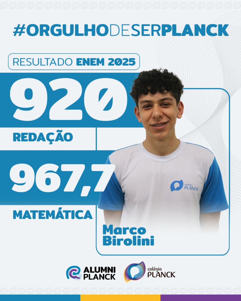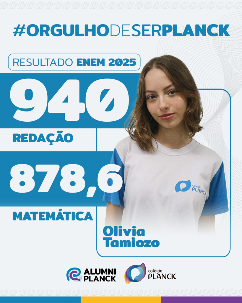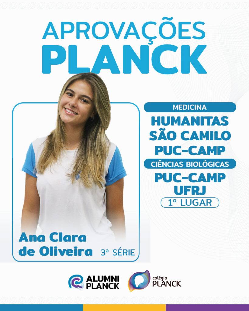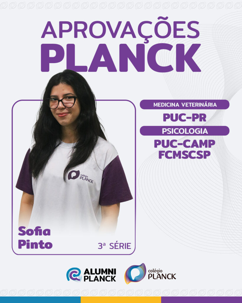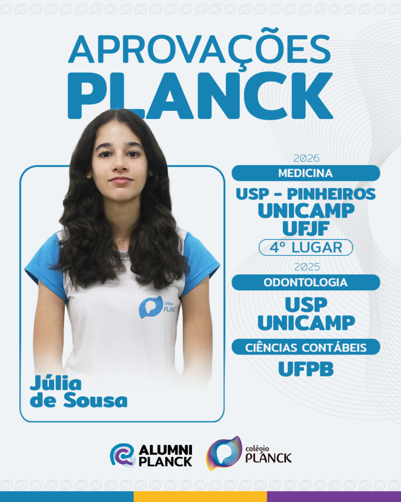 As aprovações refletem um ensino de alto nível, acompanhamento individualizado e uma formação que vai além do conteúdo, desenvolvendo autonomia e protagonismo. No Colégio Planck, cada conquista é resultado de um trabalho consistente, comprometido com o futuro e com os sonhos dos nossos estudantes.