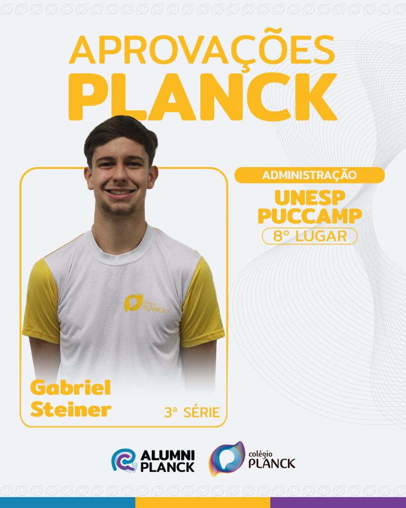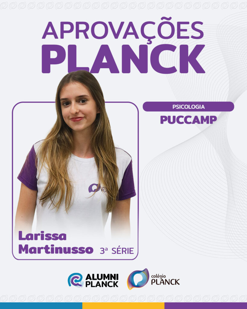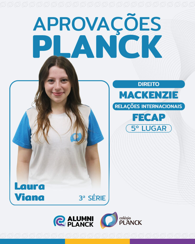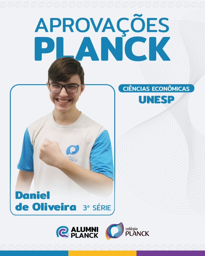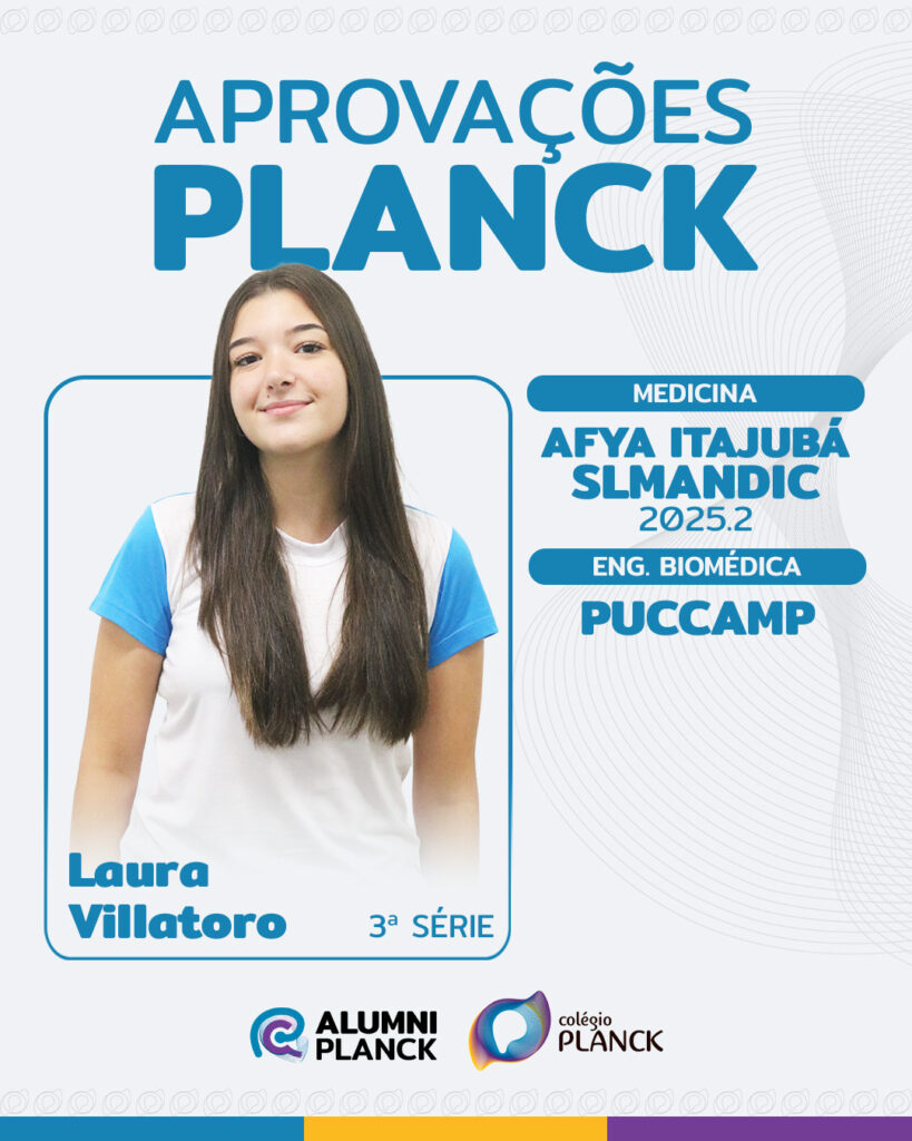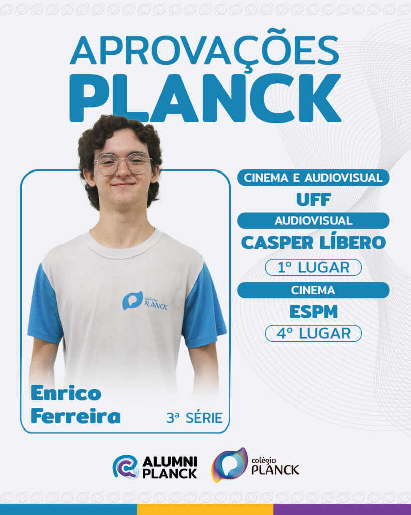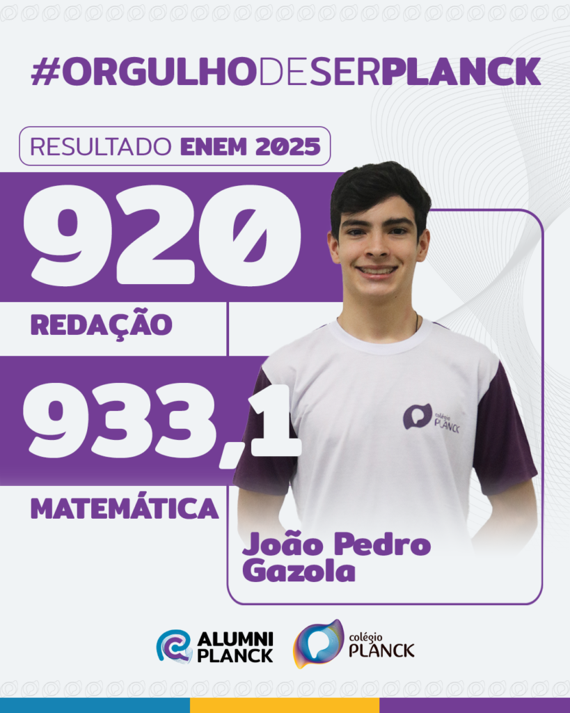 As aprovações refletem um ensino de alto nível, acompanhamento individualizado e uma formação que vai além do conteúdo, desenvolvendo autonomia e protagonismo. No Colégio Planck, cada conquista é resultado de um trabalho consistente, comprometido com o futuro e com os sonhos dos nossos estudantes.