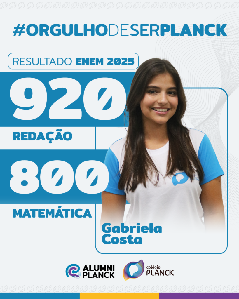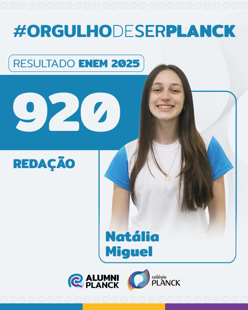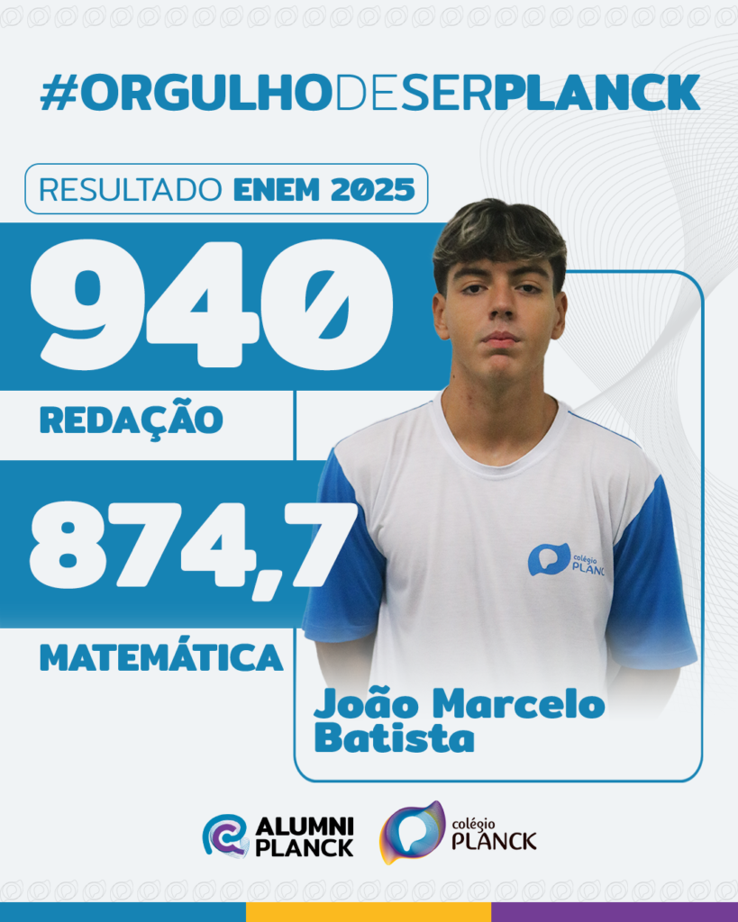 O desempenho do Colégio Planck no ENEM comprova a excelência do nosso ensino. Nossos estudantes alcançam altas médias, notas expressivas na redação e resultados acima da média nacional, evidenciando uma preparação consistente, estratégica e alinhada às exigências do exame. Mais do que números, os resultados no ENEM refletem o desenvolvimento do pensamento crítico, da autonomia e da confiança dos estudantes.